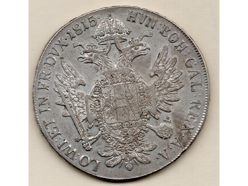 Konvenční stříbrný tolar z roku 1815 představuje klasickou ražbu Rakouského císařství za vlády Františka I. (1792–1835). Mince vznikla v období po napoleonských válkách, kdy bylo cílem monarchie upevnit měnovou jednotnost a obnovit důvěru v imperiální struktury. Rok 1815 je zároveň rokem Vídeňského kongresu, který redefinoval mocenské uspořádání Evropy.