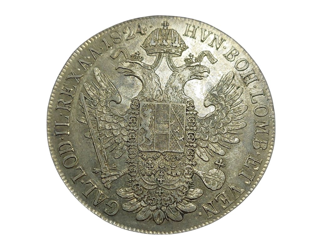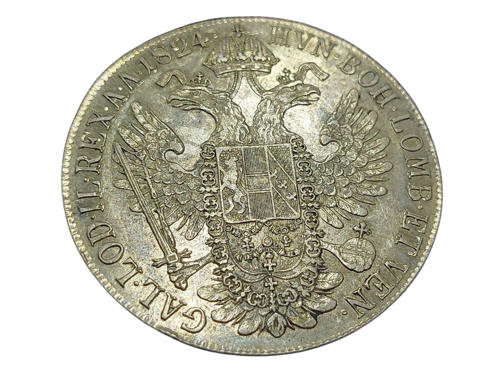 Stříbrný tolar z roku 1824 je reprezentativní ukázkou mincovní politiky Rakouského císařství za vlády Františka I., který vládl v letech 1792–1835. Tento typ mince, označovaný jako Conventionsthaler, byl standardizován pro mezinárodní obchod a obíhal nejen v monarchii, ale i v zahraničí.