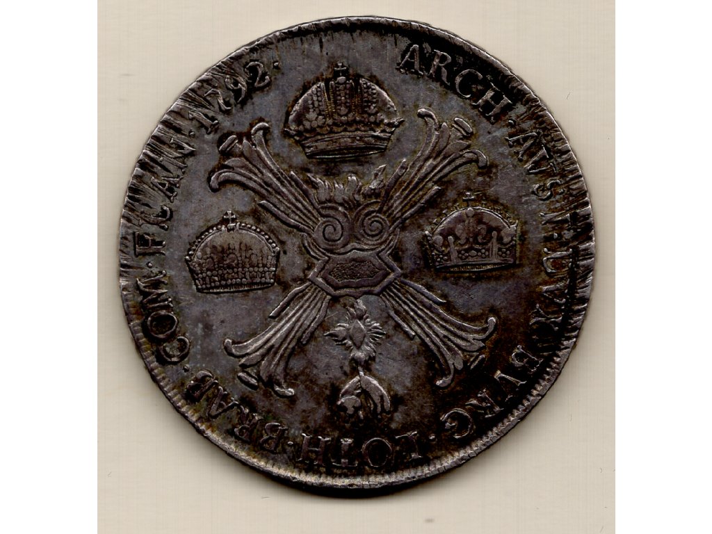 Tento stříbrný tolar z roku 1792 byl ražen v mincovně Vídeň, což dokládá značka „A“ pod portrétem. Jedná se o období vlády Františka II., posledního císaře Svaté říše římské. Po roce 1804 se stal prvním císařem rakouským a přijal jméno František I. Rakouský. Tato mince tak pochází z přelomové doby, kdy se Evropa připravovala na zásadní politické a vojenské změny.
