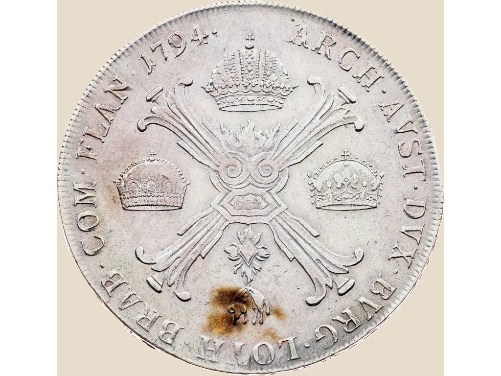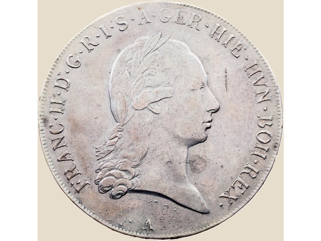 Tento stříbrný tolar z roku 1794 byl ražen v mincovněVídeň, což dokládá značka „A“ pod portrétem. Jedná se o období vlády Františka II., posledního císaře Svaté říše římské. Po roce 1804 se stal prvním císařem rakouským a přijal jméno František I. Rakouský. Tato mince tak pochází z přelomové doby, kdy se Evropa připravovala na zásadní politické a vojenské změny.