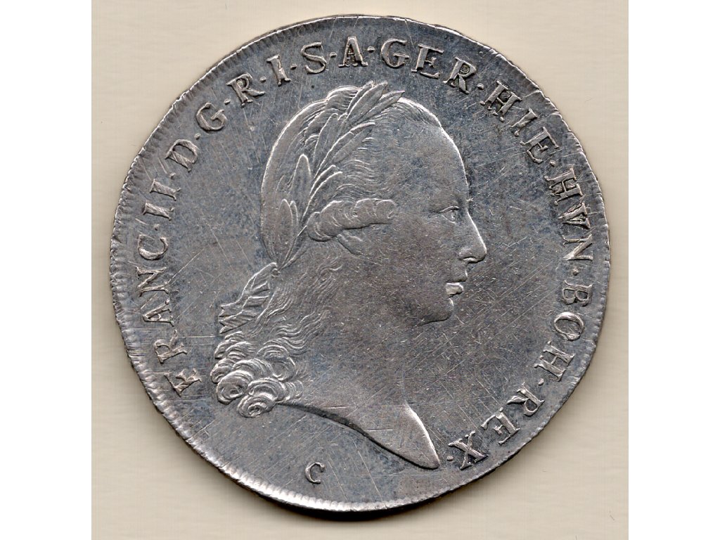 Tento stříbrný tolar z roku 1796 byl ražen v mincovně Praha, což dokládá značka „C“ pod portrétem. Jedná se o období vlády Františka II., posledního císaře Svaté říše římské. Po roce 1804 se stal prvním císařem rakouským a přijal jméno František I. Rakouský. Tato mince tak pochází z přelomové doby, kdy se Evropa připravovala na zásadní politické a vojenské změny.
