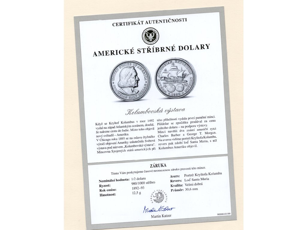 Tento stříbrný půldolar byl vyražen ve Spojených státech roku 1893 k příležitosti Světové kolumbovské výstavy v Chicagu. Výstava připomínala 400 let od první Kolumbovy plavby (1492) a měla symbolizovat rozvoj a sebevědomí mladé americké republiky. Mince je významná tím, že představuje první oficiální pamětní minci Spojených států, čímž zahájila tradici amerických numismatických emisí určených pro širší veřejnost.
