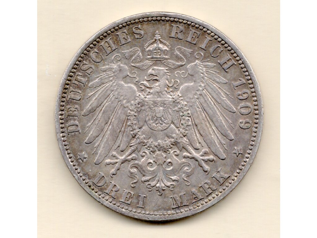 Německo - II. – 3 marky, Prusko 1909 A