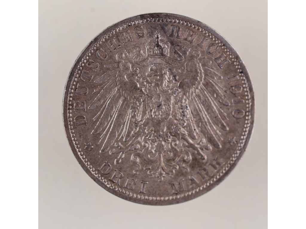 Vilém II. – 3 marky, Prusko 1910 A
