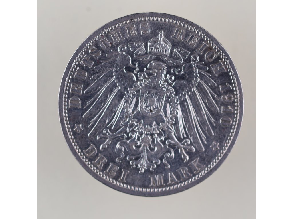 Vilém II. – 3 marky, Prusko 1910 A