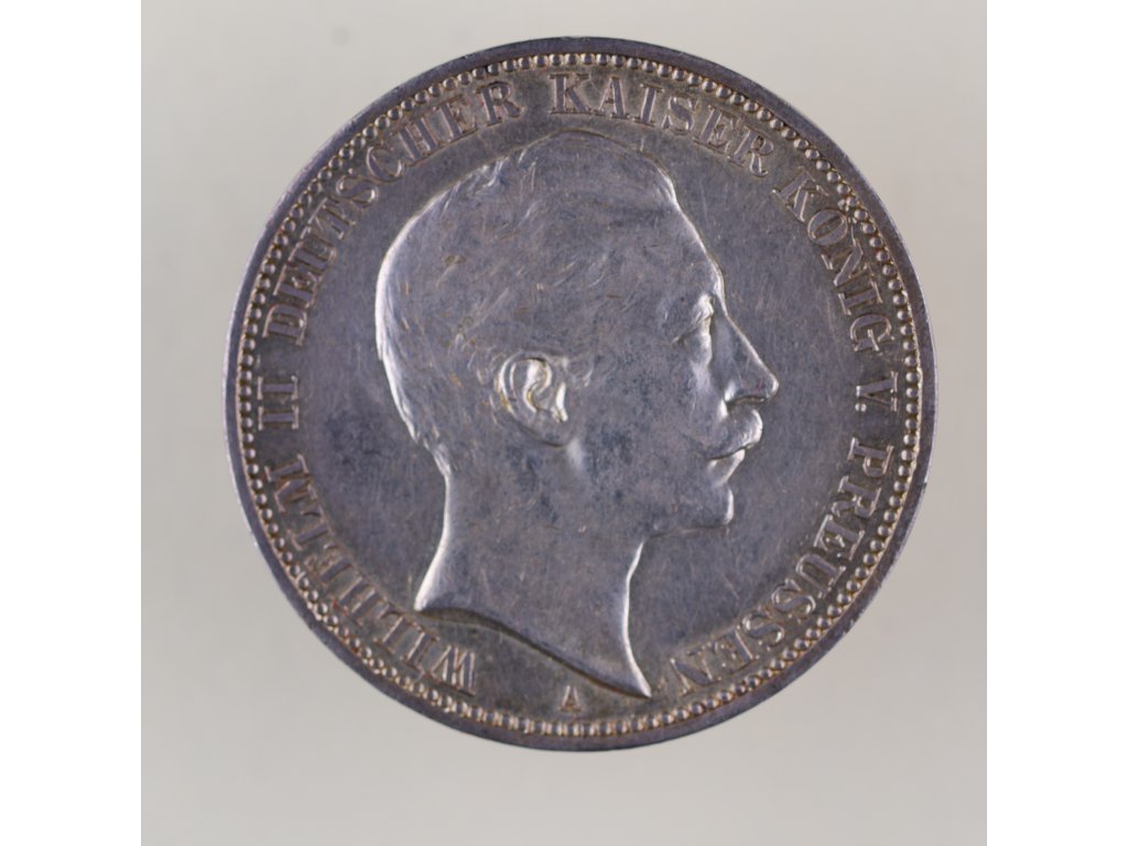 Tento exemplář o hmotnosti 16,65 g a průměru 33 mm představuje krásný doklad pruské mincovní tradice a jeden z posledních typů klasických císařských stříbrných mincí. Po roce 1920 byla třímarka demonetizována, přesto však dodnes zůstává významným svědkem konce monarchie a symbolem éry císařského Německa.