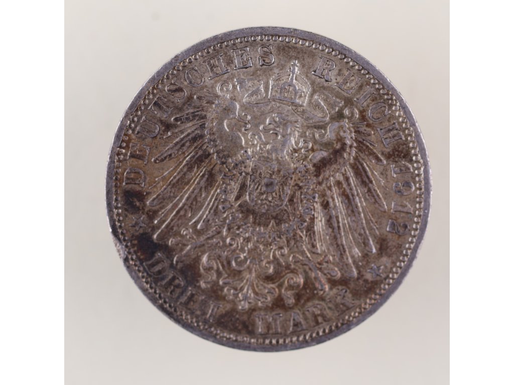 Tento exemplář o hmotnosti 16,67 g a průměru 33 mm představuje krásný doklad pruské mincovní tradice a jeden z posledních typů klasických císařských stříbrných mincí. Po roce 1920 byla třímarka demonetizována, přesto však dodnes zůstává významným svědkem konce monarchie a symbolem éry císařského Německa.