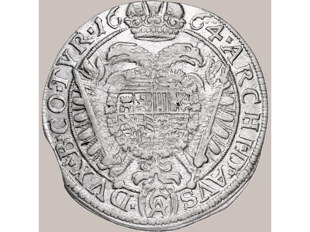 Na reverzu se vyjímá císařský dvouhlavý orel s rozsáhlým habsburským znakem a korunou, obklopený opisem s tituly Leopolda I. Letopočet 1664 je vyražen po stranách horní části, dole je výrazná značka vídeňské mincovny CA, označující mincmistra Andrease Cetta.