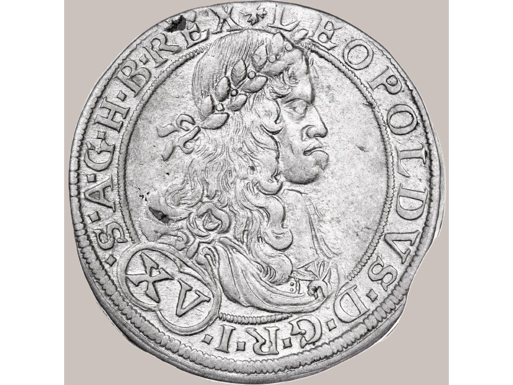 Tento 15 krejcar z roku 1664 představuje jednu z raných mincí vlády císaře Leopolda I.. Averz mince zdobí charakteristický portrét panovníka s dlouhými vlasy, římským brněním a vavřínovým věncem, doplněný opisem LEOPOLDVS D G R I S A G H B REX. V poli pod ramenem se nachází hodnota XV.