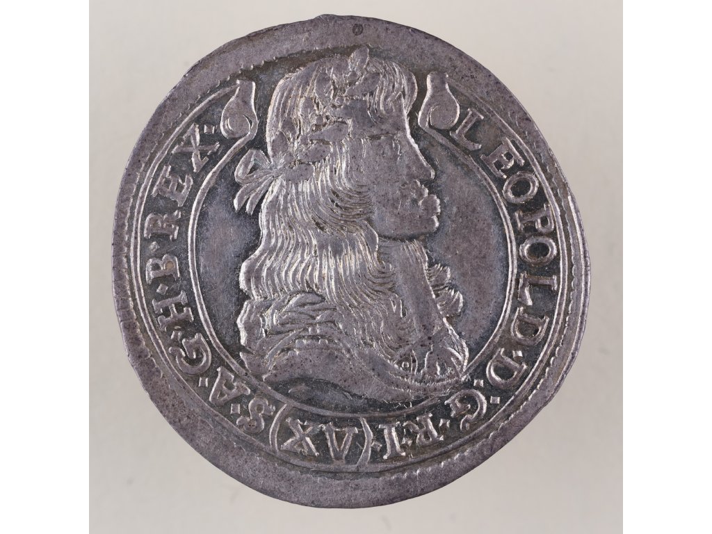 Tento uherský 15 krejcar byl vyražen roku 1679 v mincovně Kremnica za vlády císaře Leopolda I. Habsburského, známého jako „der Türkenschreck“ (postrach Turků). Averz mince nese portrét panovníka s bohatě stylizovanou parukou a korunou, doplněný legendou LEOPOLD D.G.R.I.S.A.G.H.B.REX, která vyjadřuje jeho tituly včetně krále římského, uherského a českého. Pod portrétem je značka nominálu „XV“ v ozdobném kartuši.