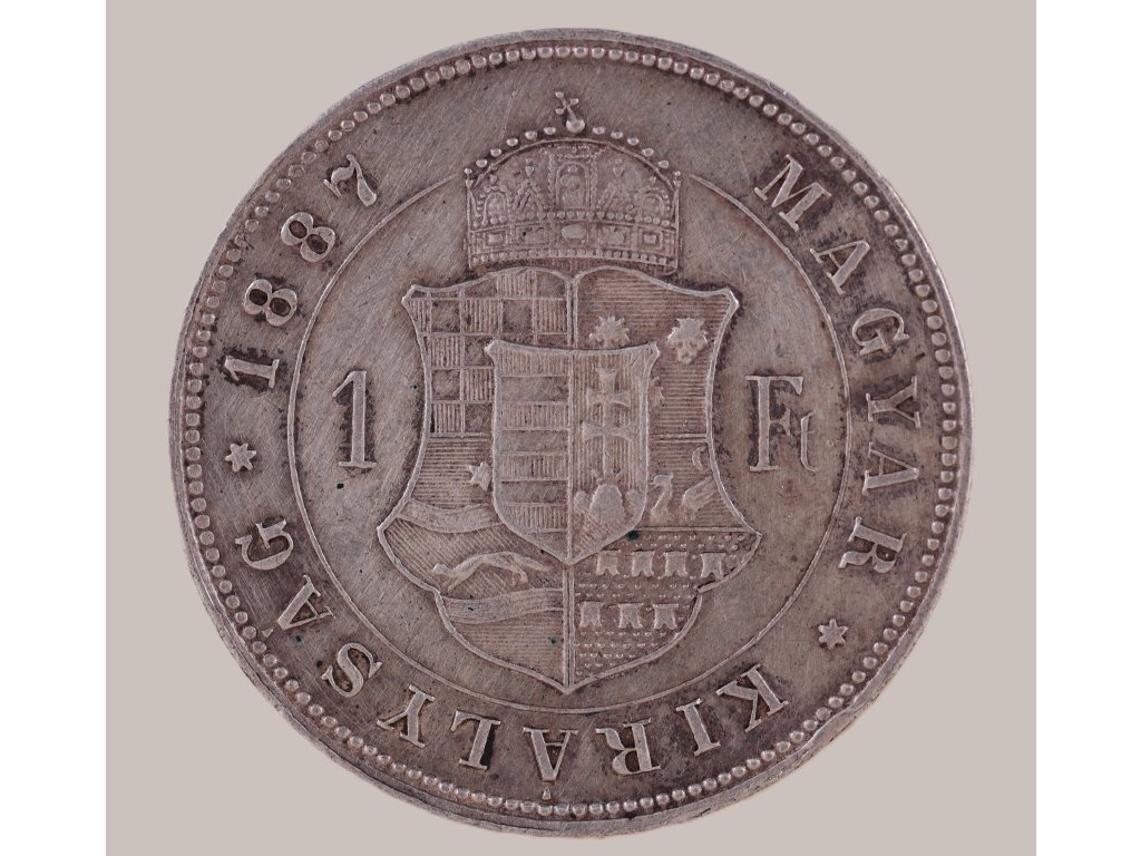 Tato mince o nominální hodnotě 1 florin (forint) pochází z období vlády Františka Josefa I., rakouského císaře a uherského krále, který vládl v letech 1848–1916. Vydána byla v roce 1887 v uherské části monarchie, konkrétně v Kremnické mincovně (značeno K.B. pod krkem panovníka).