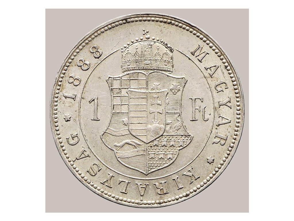 Tato mince o nominální hodnotě 1 florin (forint) pochází z období vlády Františka Josefa I., rakouského císaře a uherského krále, který vládl v letech 1848–1916. Vydána byla v roce 1888 v uherské části monarchie, konkrétně v Kremnické mincovně (značeno K.B. pod krkem panovníka).