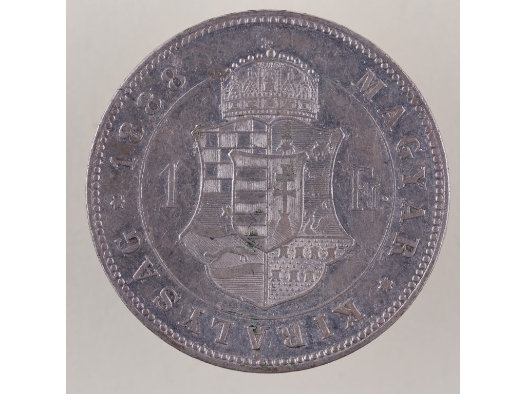 Tato mince o nominální hodnotě 1 florin (forint) pochází z období vlády Františka Josefa I., rakouského císaře a uherského krále, který vládl v letech 1848–1916. Vydána byla v roce 1888 v uherské části monarchie, konkrétně v Kremnické mincovně (značeno K.B. pod krkem panovníka).