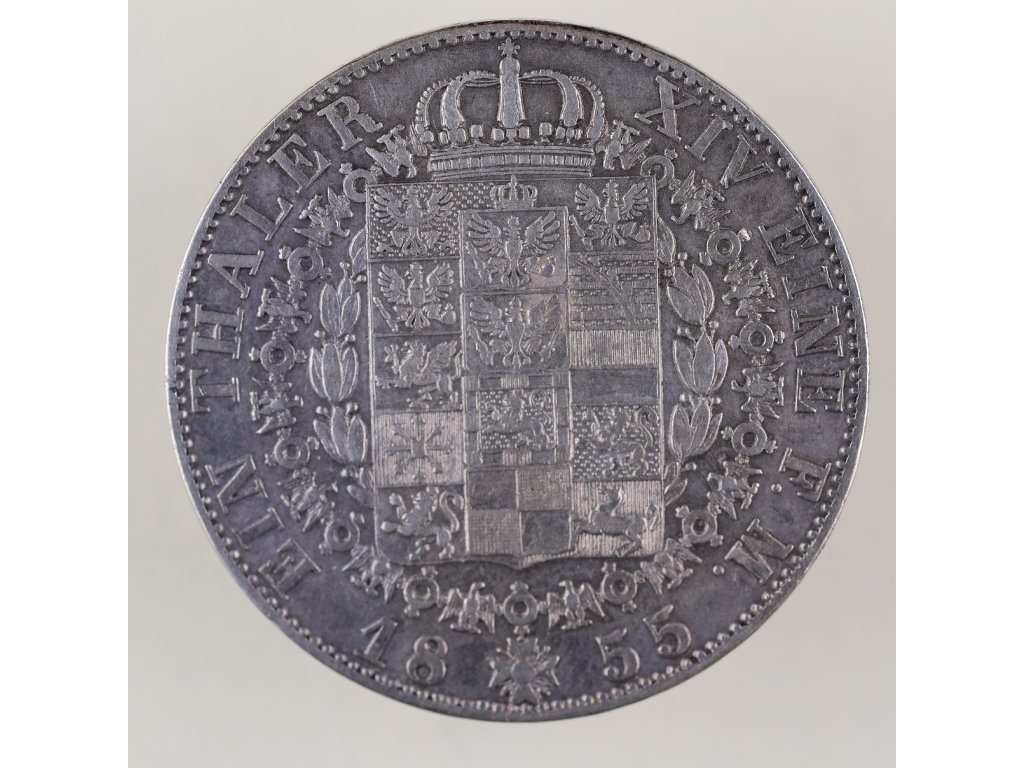 Tento exemplář z roku 1855 byl ražen v období vrcholu vlády Fridricha Viléma IV., kdy Prusko upevňovalo svou ekonomickou a vojenskou sílu. V dobře zachovaném stavu představuje atraktivní sběratelský kus, spojující eleganci pruského klasicismu s historickou hloubkou poloviny 19. století.
