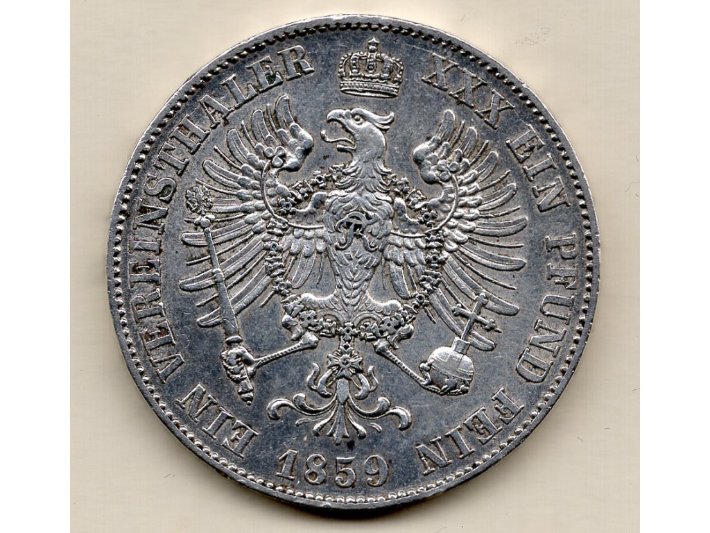 Stříbrný Vereinsthaler byl výsledkem měnové dohody německých států z roku 1857, která sjednotila parametry tolarové měny v rámci širšího hospodářského prostoru. Hodnota byla nově definována jako podíl metrické libry stříbra, což představovalo modernější a přesnější standard než starší kolínská hřivna. Tento krok posílil obchodní stabilitu a usnadnil mezistátní platební styk.