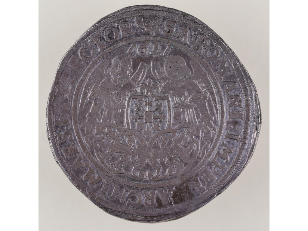 Mince nese složitě komponované alianční erby, obklopené bohatě zdobenou legendou. Vzhledem ke svému původu a okolnostem ražby představuje autentický doklad turbulentního období třicetileté války. Sběratelé si těchto emisí cení nejen pro jejich umělecké ztvárnění, ale i pro jejich roli v dějinách měnového systému. Mince nebyla certifikována, ale zachovalost je solidní a patina přirozená. Vhodná do specializované sbírky raně novověkých německých ražeb.