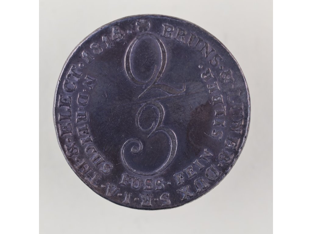 Reverz nese velkou hodnotu 2/3 uprostřed a kolem ni opis BRUNS.&LUNEB.DUX·S.R.I.A.TH.&ELECT.1814 N.D.REICHS·FUSS·FEIN·SILBER·, což lze přeložit jako „Vévoda brunšvicko-lüneburský, pokladník Svaté říše římské a kurfiřt, dle říšské míry, jemné stříbro“. Tímto opisem mince odkazuje ještě na starý systém říšských titulů, ačkoli Svatá říše římská už tehdy neexistovala – cenný historický detail.