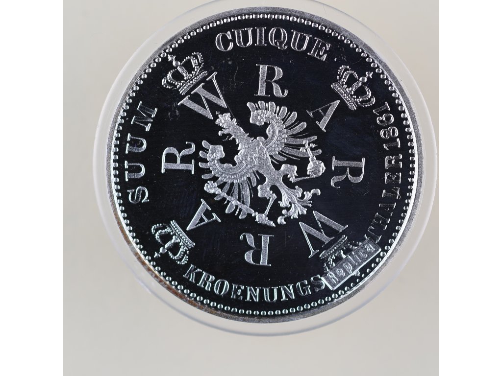 Prusko – korunovační tolar 1861 A, Vilém I. a Augusta, stříbrná replika Proof