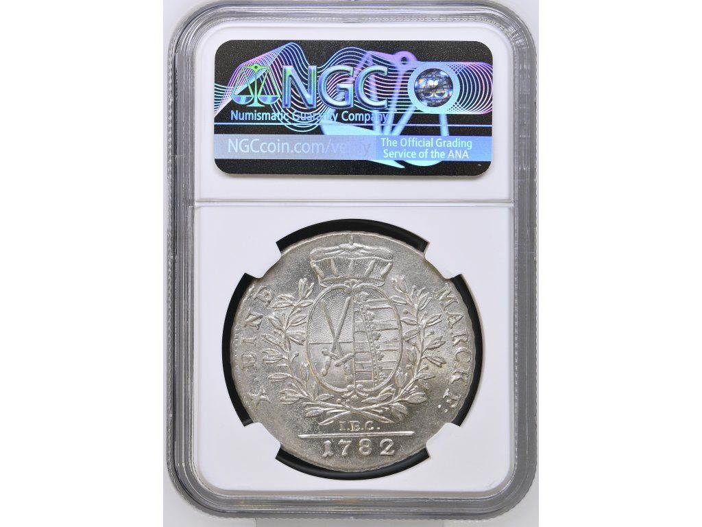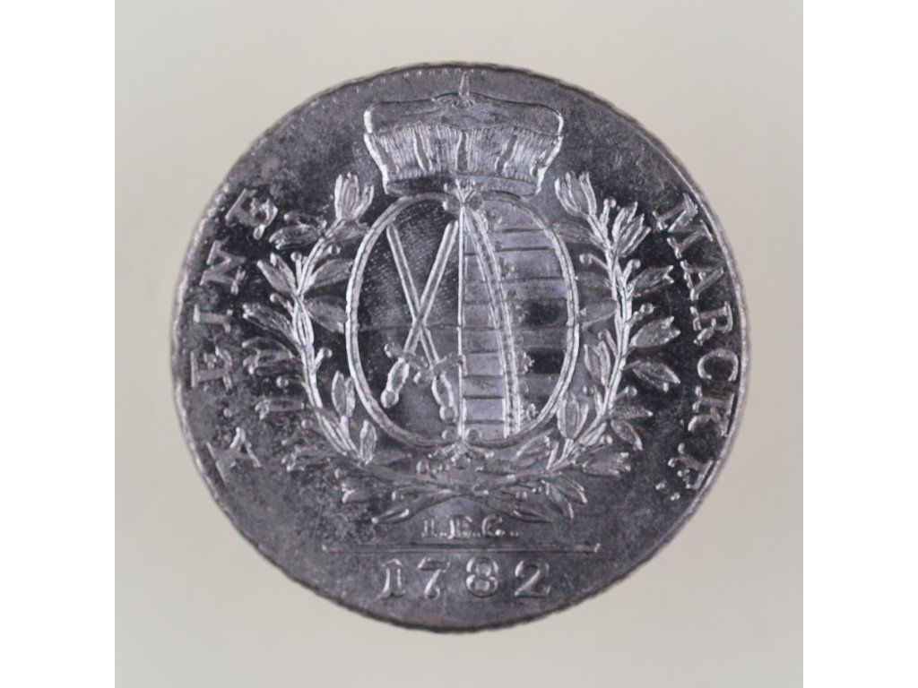 Tento stříbrný tolar s označením EINE MARCKE byl ražen v roce 1782 v Sasku za vlády Fridricha Augusta III., který vládl jako kurfiřt a později se stal prvním králem Saska. Měnová jednotka „Eine Marcke“ odpovídala jedné čtrnáctině kolínské hřivny, tedy zhruba 27,9 g stříbra, což potvrzuje i naměřená hmotnost této mince.