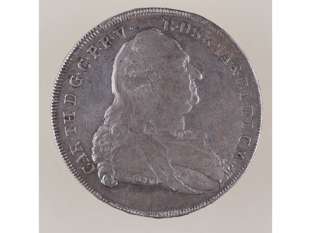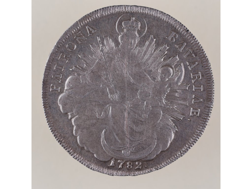 Tento stříbrný tolar byl ražen v roce 1782 v Bavorsku za vlády kurfiřta Karla Theodora, který vládl jak falckému, tak bavorské části říše. Averz mince zobrazuje portrét panovníka v typickém rokokovém stylu s bohatými detaily výstroje a pláště. Nápis v legendě odkazuje na jeho tituly v rámci Svaté říše římské.