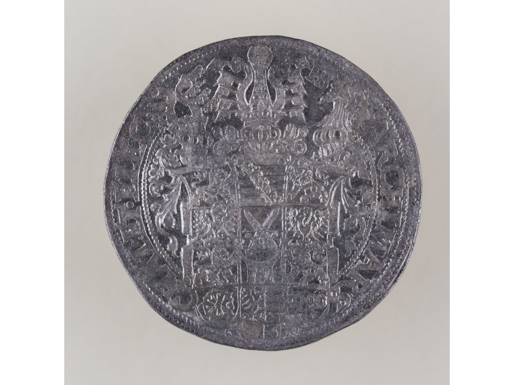 Reverz dominuje velkolepý alianční erb rodu Wettinů pod císařskou korunou. Opis ARCHIMARS CHAL ET EIHC je zkratkou titulů: *Archimarescallus (S.R.I.) Comes Hennebergiensis, Elector Imperii, etc.*, tedy „Arcimaršálek říše, hrabě z Hennebergu, říšský kurfiřt atd.“