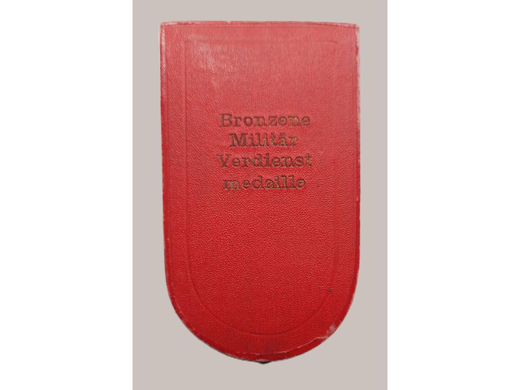 Reverz zobrazuje vavřínový a dubový věnec s nápisem SIGNUM LAUDIS („znamení chvály“). Medaile je zavěšena pod císařskou korunou na trojúhelníkové červené stuze a je uložena v původní etuji se zlatým nápisem „Bronzene Militär Verdienst Medaille“. Víko etuje nese emblém vídeňského výrobce Zimbler – dvorního dodavatele c. a k. dvora.