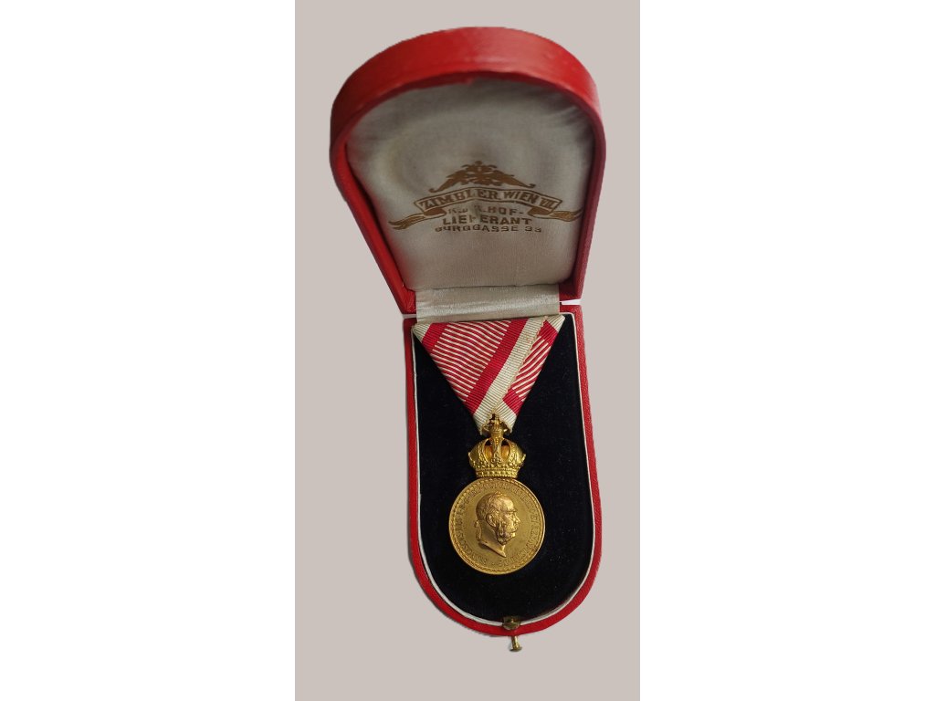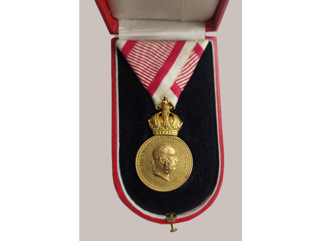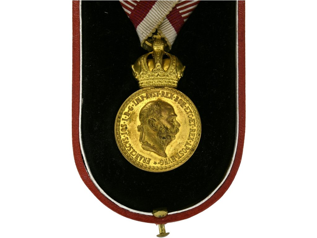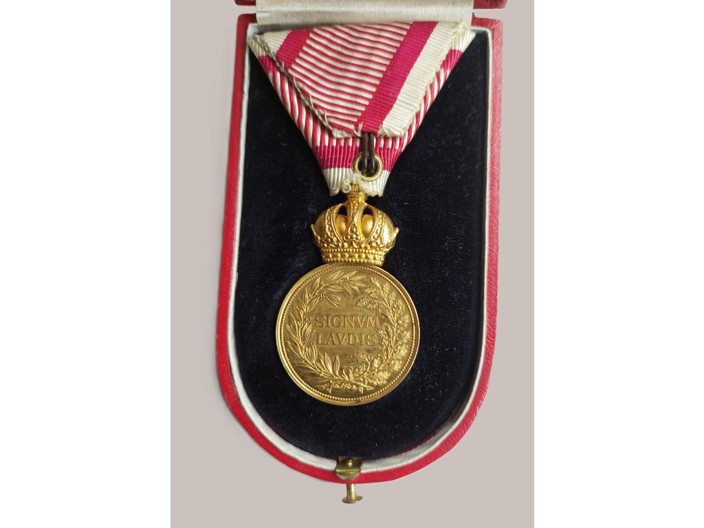 Tato bronzová vojenská záslužná medaile Signum Laudis pochází z období vlády císaře Františka Josefa I. a byla udělována důstojníkům rakousko-uherské armády za mimořádné vojenské zásluhy. Na averzu je vyobrazen císařský portrét a kolem něj probíhá latinská legenda: FRANCISCVS · IOS · I · D · G · IMP · AVSTR · REX BOH · ETC · ET APOST · HVNG, tedy „František Josef I., z Boží vůle císař rakouský, král český atd. a apoštolský král uherský“.