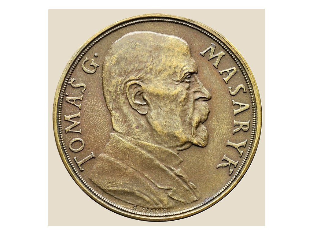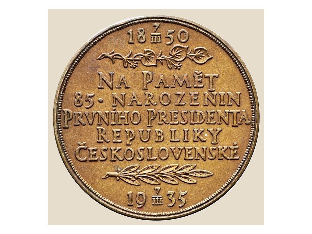 bron pamětní medaile z roku 1935 byla vydána na počest 85. narozenin Tomáše Garrigua Masaryka, zakladatele a prvního prezidenta Československé republiky. Autorem uměleckého návrhu je renomovaný český sochař a medailér Otakar Španiel. Averz medaile zobrazuje výrazný pravý profil Masaryka, doplněný nápisem TOMAS G. MASARYK, který zdůrazňuje jeho osobnost a státnickou autoritu.