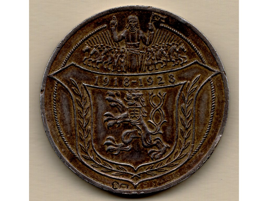 První československá republika se v roce 1928 nacházela v období kulturního i hospodářského rozmachu. První desetiletí samostatného státu bylo spojeno s budováním infrastruktury, posilováním národní identity a podporou domácí výroby. Medaile „Jsem ražen z českého kovu“ tento duch přesně vystihuje – zdůrazňuje schopnost republiky opírat se o vlastní průmysl, hutnictví i uměleckou tvorbu.