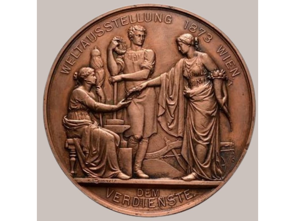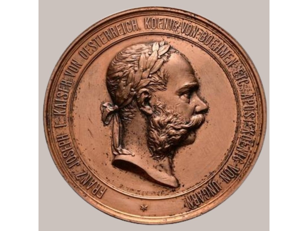 Světová výstava ve Vídni 1873 – bronzová medaile „Dem Verdienst“ s portrétem Františka Josefa I.