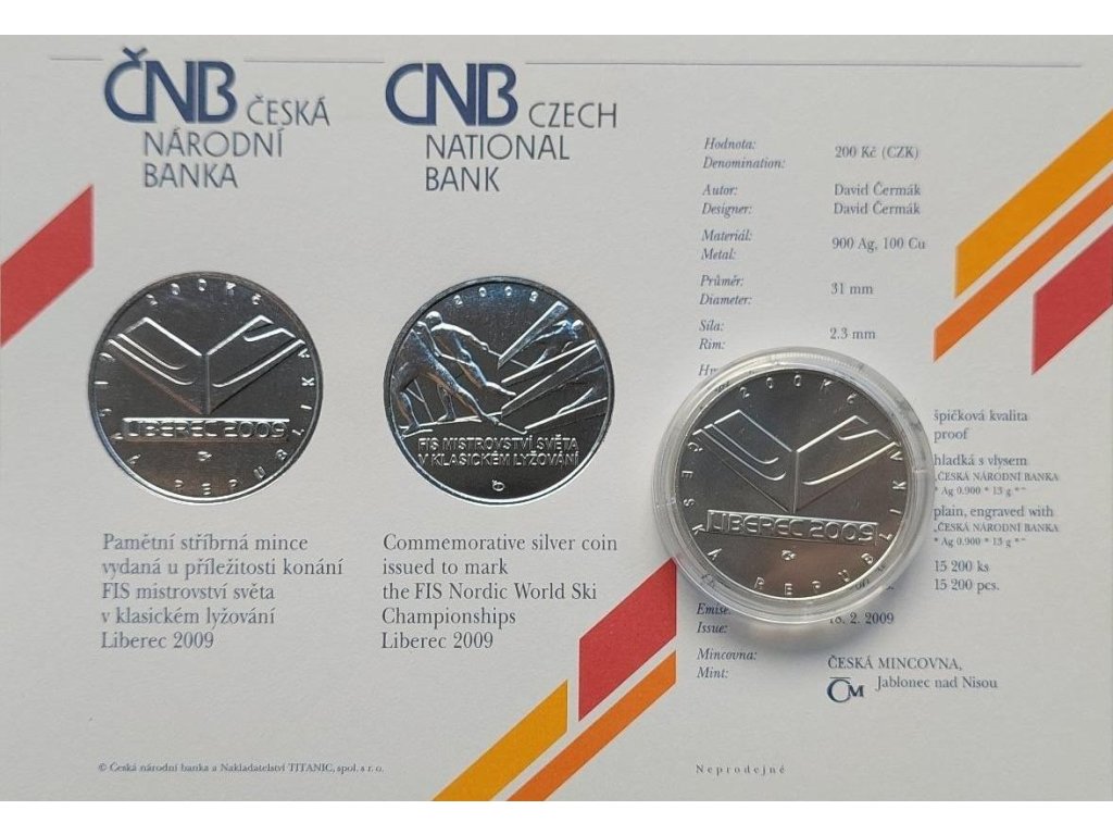 Stříbrná pamětní mince nominální hodnoty 200 Kč byla vydána Českou národní bankou v roce 2009 u příležitosti konání Mistrovství světa v klasickém lyžování FIS v Liberci. Šampionát se stal historicky největší sportovní událostí svého druhu pořádanou v samostatné České republice a mince připomíná nejen sportovní úspěchy, ale také organizační prestiž země.