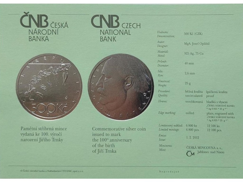 Stříbrná pamětní mince nominální hodnoty 500 Kč byla vydaná Českou národní bankou dne 1. 2. 2012 u příležitosti 100. výročí narození Jiřího Trnky – význačného českého výtvarníka, ilustrátora a průkopníka loutkového filmu.