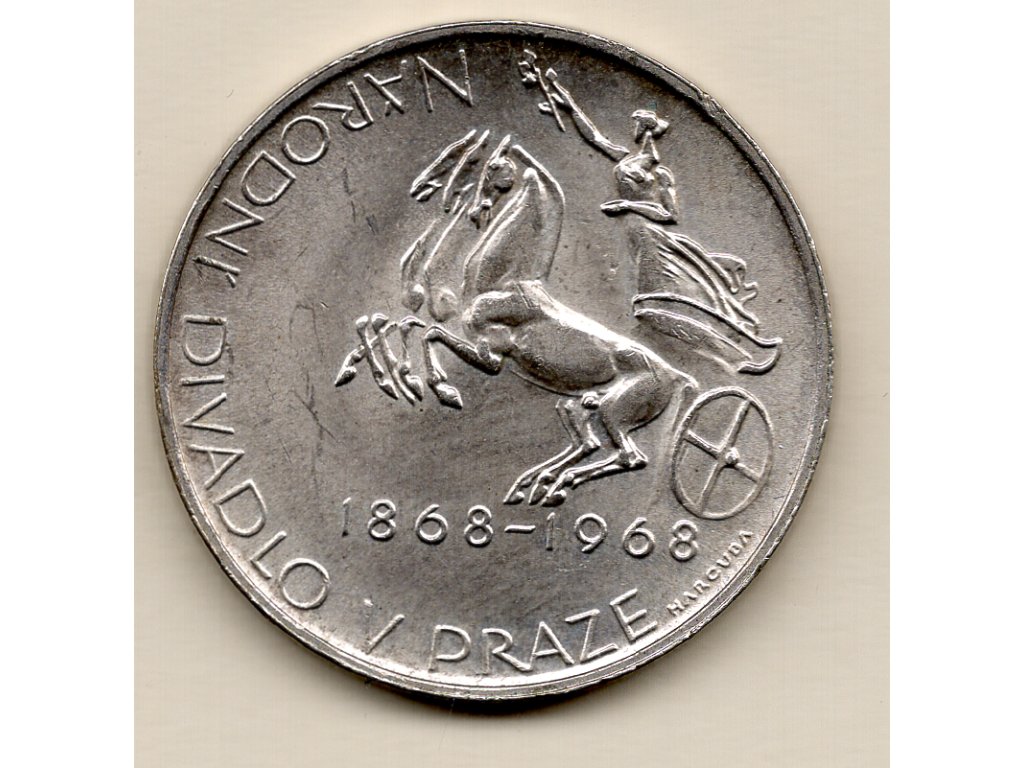 Pamětní mince o nominální hodnotě 10 Kčs byla vydána v roce 1968 ke stému výročí této události. Averz zobrazuje alegorickou kompozici inspirovanou výzdobou a uměleckým odkazem divadla, včetně symbolických postav a motivů spjatých s českou historií. Celek působí dynamicky a vyjadřuje ideu národní kultury jako živé a tvořivé síly.