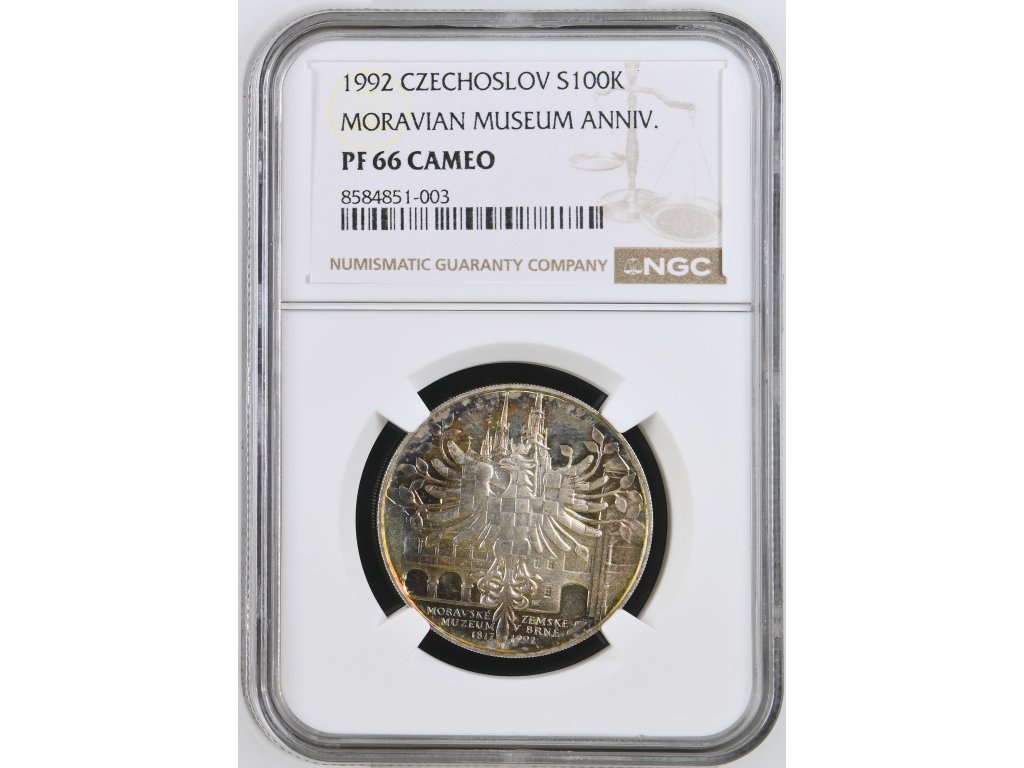 Československo – 100 Kčs 1992, 175. výročí Moravského zemského muzea, Proof, MS 66 CAMEO