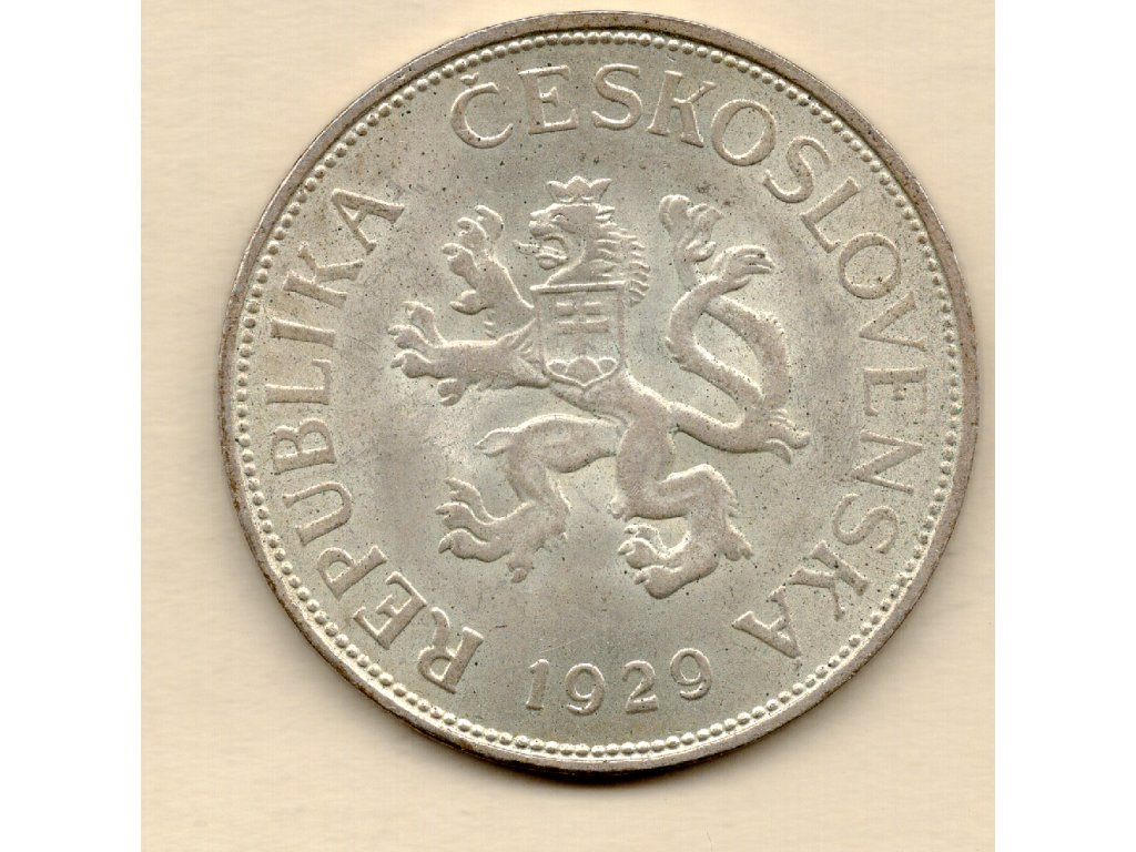 Československo vzniklo v roce 1918 jako demokratický stát s důrazem na hospodářský růst, vzdělanost a moderní infrastrukturu. První republika se brzy stala průmyslovým centrem střední Evropy a tyto hodnoty se odrazily i v jejím mincovnictví. Stříbrná mince o hodnotě 5 korun z roku 1929 je jedním z nejpůsobivějších dokladů této éry.
