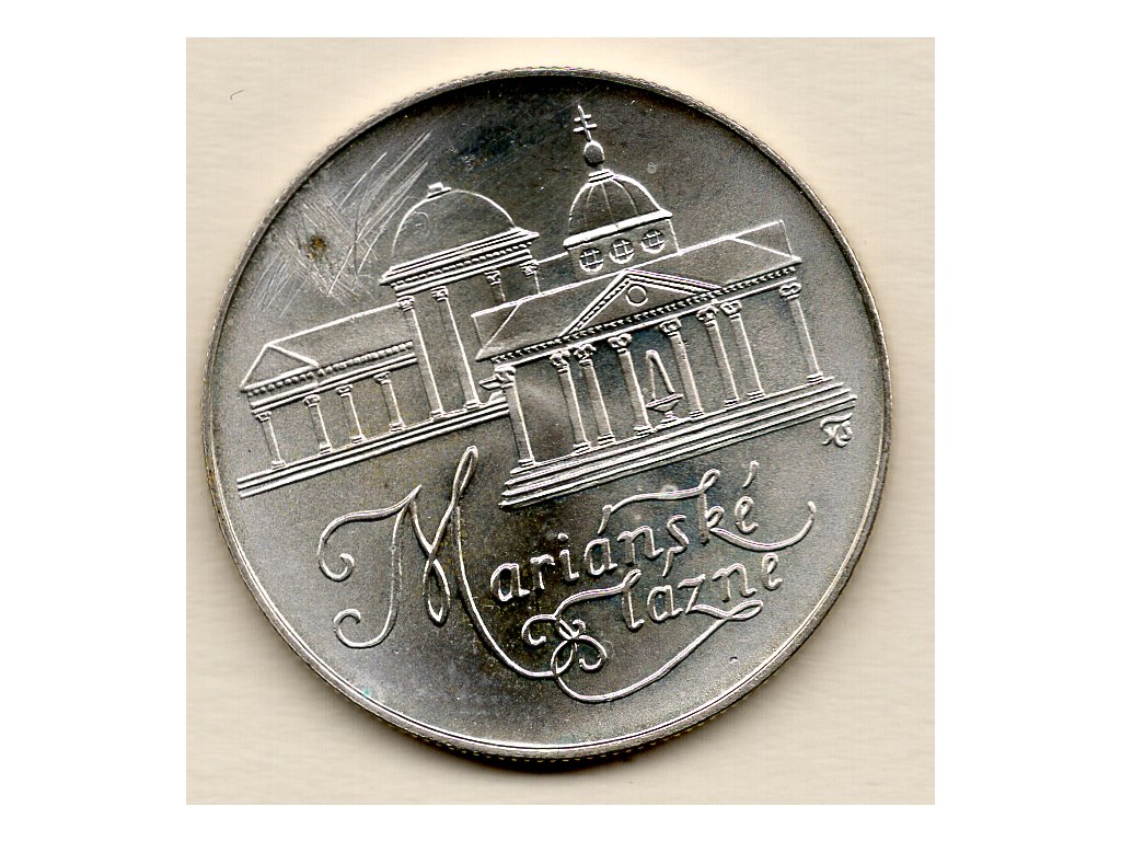 Mariánské Lázně jsou symbolem českého lázeňství již od 19. století, kdy se staly oblíbeným místem evropské aristokracie, umělců i vědců. Léčivé minerální prameny a architektura klasicistního a empírového stylu z nich učinily jedno z nejvýznamnějších kulturních a společenských center českých zemí. Pamětní mince z roku 1991 vzdává hold tomuto odkazu a kulturnímu dědictví, které je dnes součástí světového lázeňského trojúhelníku (spolu s Karlovými Vary a Františkovými Lázněmi).