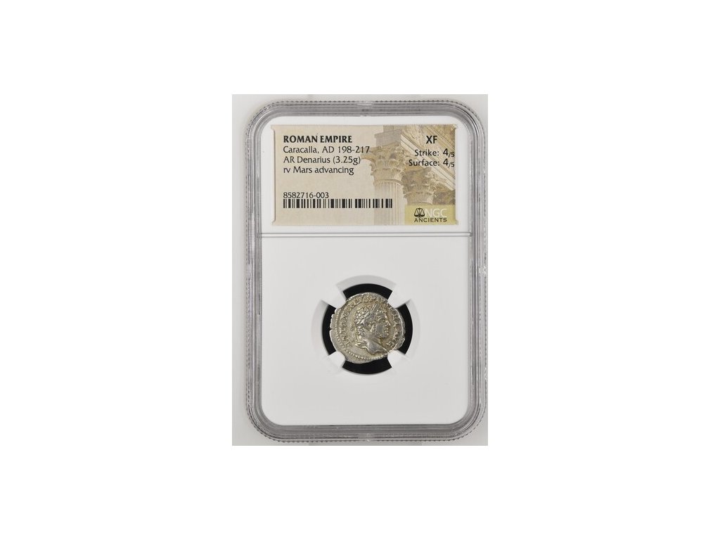 Caracalla – denár, Řím 213 n. l., NGC XF
