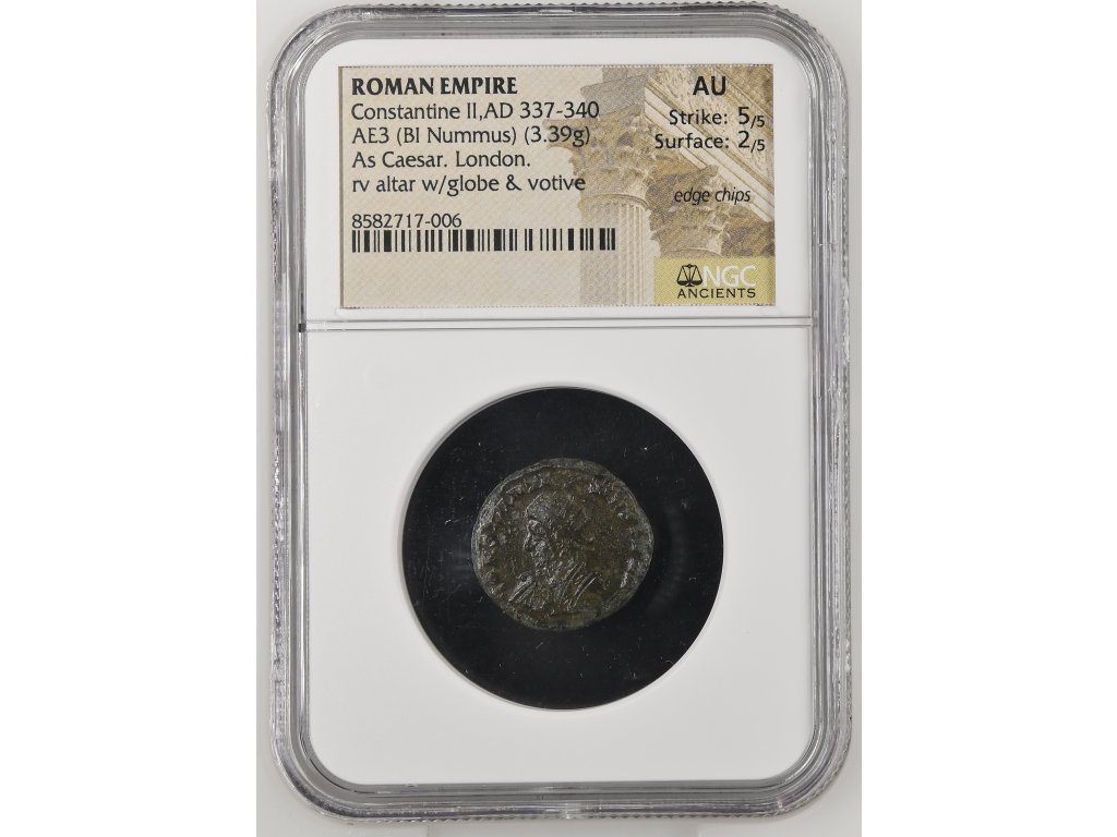 Tento follis ve stavu aUNC s certifikací NGC (Strike 5/5, Surface 2/5) je výjimečně zachovalým exemplářem, který přináší autentické svědectví o vládě Konstantinovy dynastie a významu Londinia jako mincovního centra. Pro sběratele antiky jde o mimořádně hodnotný kus s historickým přesahem.