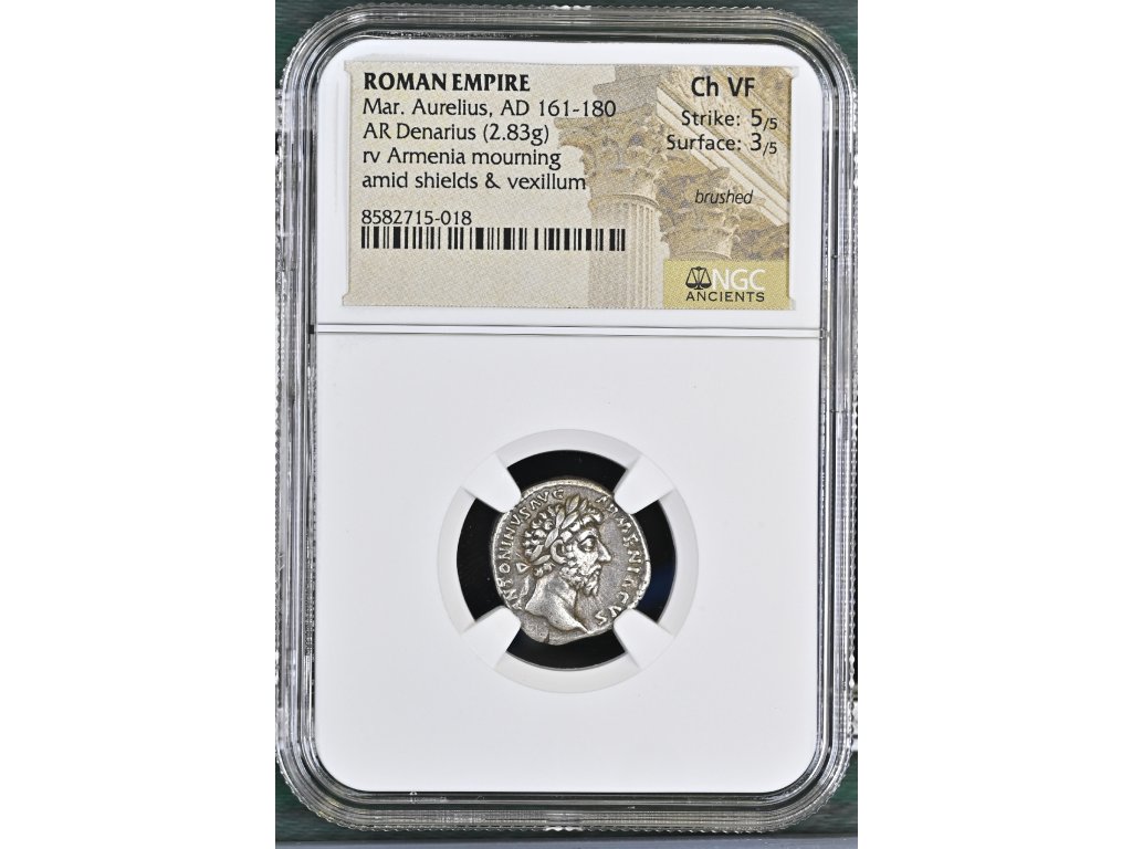 Ražby tohoto typu tvoří důležitou součást vítězných emisí 2. století a dokládají, jak promyšleně Řím využímal mince jako prostředek státní propagandy. Certifikace Ch VF potvrzuje solidní stav zachování s dobře čitelnými detaily a přirozenou patinou, což z tohoto denáru činí atraktivní sběratelský kus s výrazným historickým příběhem.