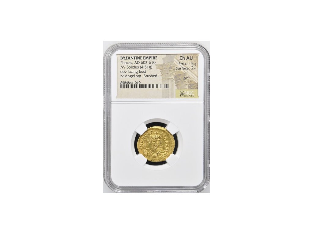 Exemplář byl ražen v konstantinopolské mincovně, hlavním hospodářském a politickém centru říše. Je certifikován společností NGC s hodnocením Ch AU, které potvrzuje velmi atraktivní dochovanost a kvalitu ražby. Solidus císaře Foky je vyhledávaným sběratelským typem díky historickému významu i reprezentativnímu charakteru zlaté byzantské měny.