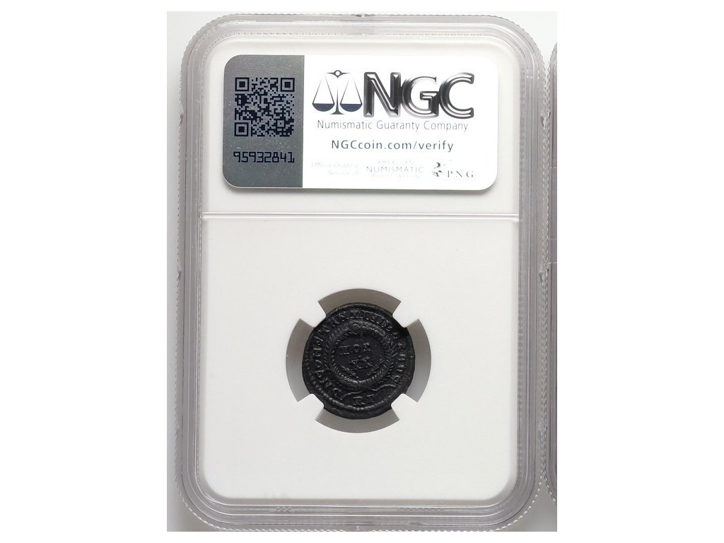 Mince je certifikována společností NGC Ancients stupněm XF (Extremely Fine), což potvrzuje velmi dobrou zachovalost s výraznými detaily a současně garantuje pravost i odborné posouzení stavu.