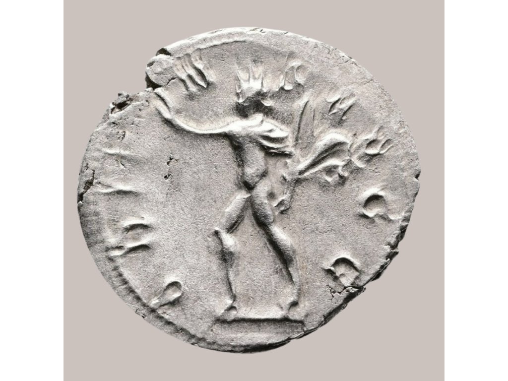 Valerianus I. se stal císařem v roce 253 n. l. a jeho vláda připadla na jedno z nejtěžších období v dějinách Říma – éru vnitřní nestability, občanských válek a východních hrozeb. Tento stříbrný antoninián byl ražen v Kolíně nad Rýnem mezi lety 257–258 n. l., tedy v době, kdy Valerianus čelil tlakům perské říše i narůstajícím problémům v provincii Sýrie.