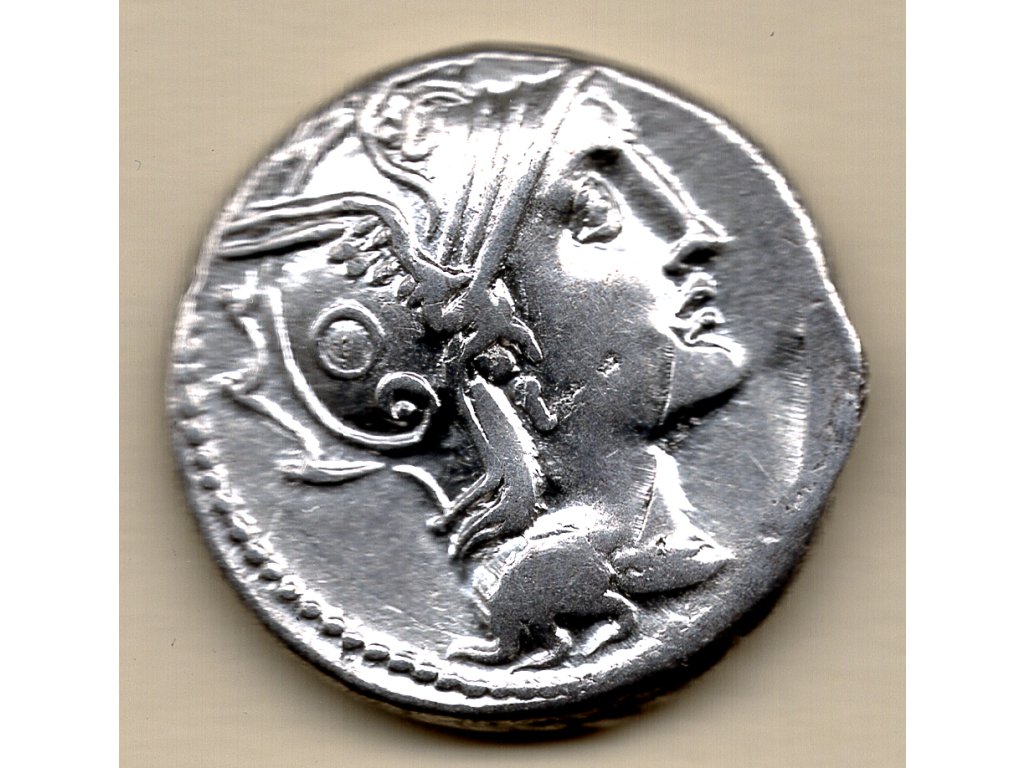 Zobrazení bohyně Romy na averzu odráží úctu k samotné podstatě římského státu – jeho moci, vojenské odvaze a ochraně bohů. Na reverzu se objevuje Viktorie v rychlé bize, jeden z nejčastějších symbolů vítězství a božského příznivého vedení Říma. Tyto motivy tvořily páteř republikánské ideologie a připomínaly pevné hodnoty, na nichž bylo zřízení vystavěno.