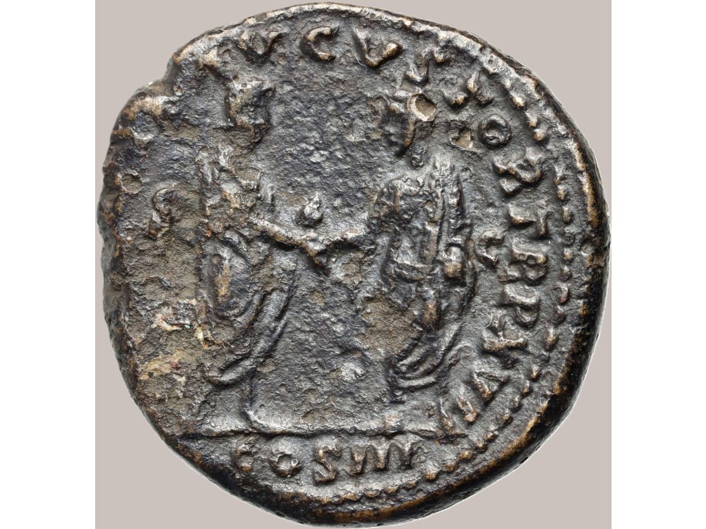 Marcus Aurelius byl jedním z nejvýznamnějších filozofů na římském trůnu. Po smrti adoptivního otce, císaře Antonina Pia, převzal vládu v roce 161 n. l. a rozdělil ji se svým adoptivním bratrem Luciem Verem. Tento dupondius, ražený v raném období jejich společné vlády, vyjadřuje ideu Concordia Augustorum – soulad mezi oběma císaři, který měl posílit legitimitu nové dynastie Antoninů. Společné zobrazení panovníků na reverzu představovalo výjimečný motiv a mělo posílit důvěru římského lidu ve stabilitu vlády.