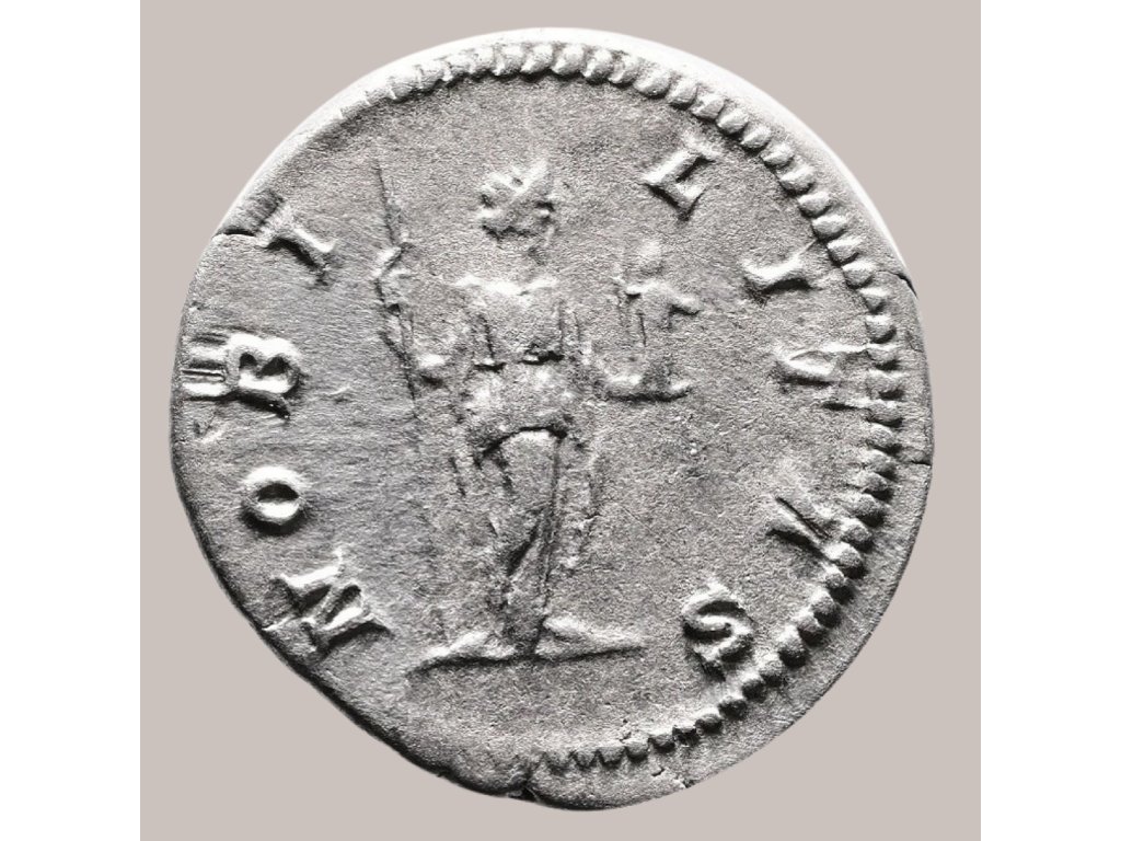 Reverz nese postavu bohyně Nobilitas, zosobnění urozenosti, ctnosti a legitimity. V jedné ruce drží žezlo jako symbol autority, ve druhé palladium – posvátný symbol ochrany Říma. Nápis NOBILITAS jednoznačně odkazuje na cílenou prezentaci Gety jako příslušníka vznešené dynastie, který má být pokračovatelem římských tradic a ctností.
