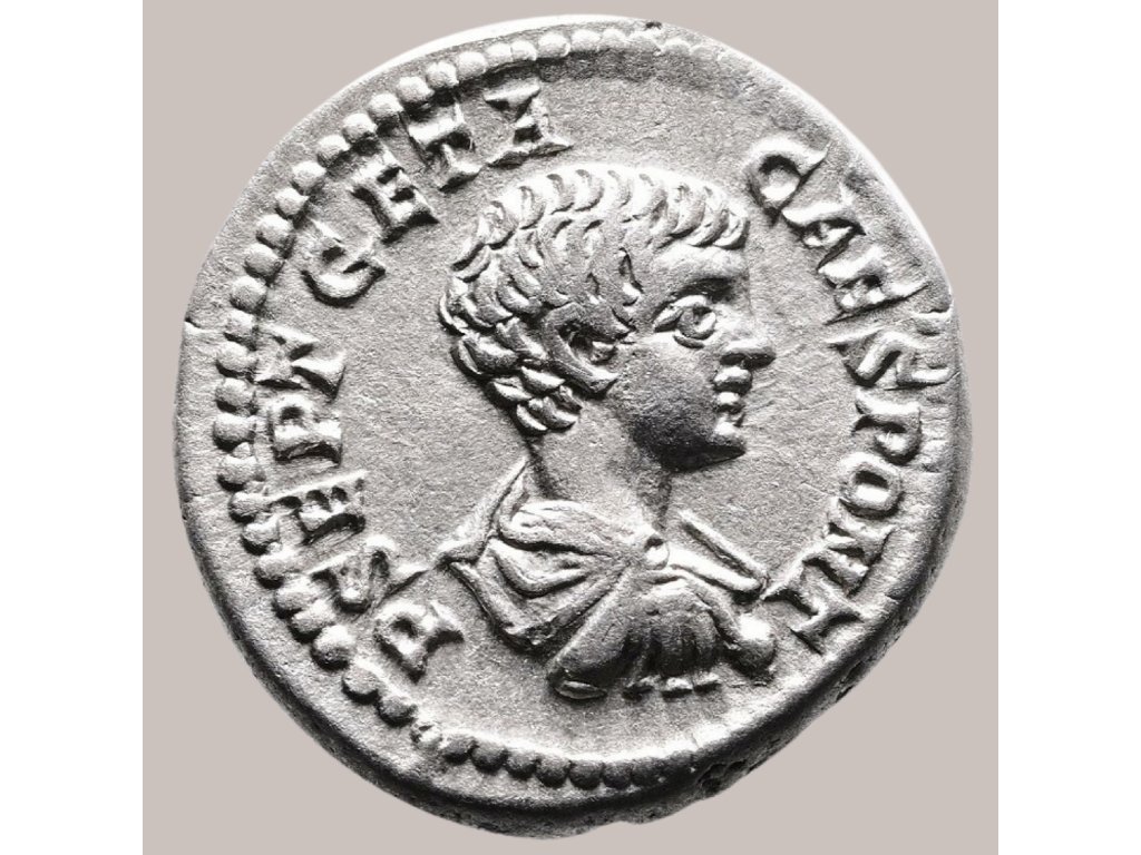Geta, mladší syn císaře Septimia Severa a bratr známějšího Caracally, byl jmenován caesarem v roce 198 n. l., když mu bylo pouhých deset let. Tento stříbrný denár vznikl v římské mincovně mezi lety 200–202 n. l., tedy v době, kdy dynastie Severovců usilovala o upevnění své legitimity a předání moci dalším generacím.
