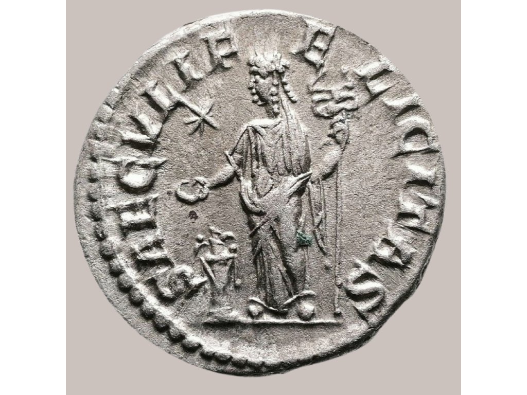 Julia Maesa, sestra císařovny Julie Domny a babička císařů Elagabala a Alexandra Severa, sehrála klíčovou roli při obnovení severovské dynastie po zavraždění Caracally. Tento denár vznikl mezi lety 220–222 n. l., kdy Maesa užívala titul Augusta a de facto řídila dění v impériu v pozadí vlády mladého Elagabala.