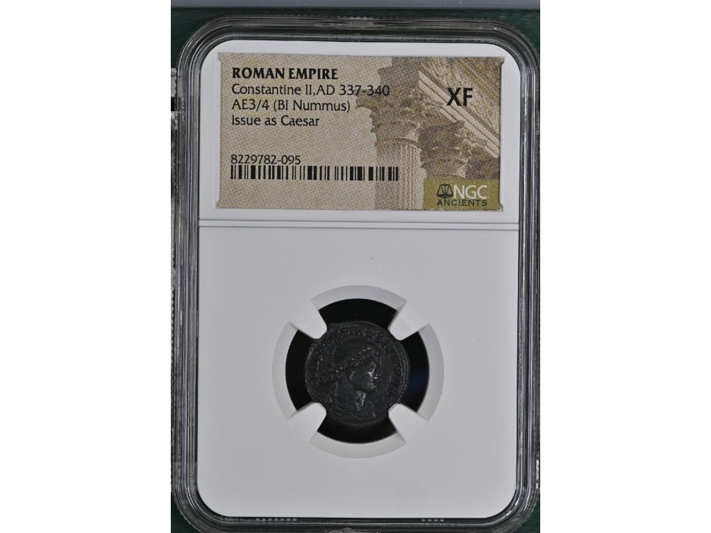 Římská říše - Konstantin II. – AE3 (bi nummus), 337–340 n. l., XF, NGC Ancients