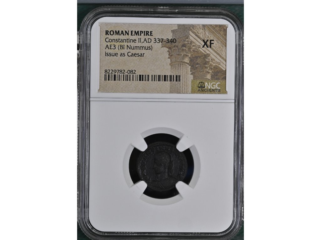 Konstantin II., nejstarší syn Konstantina Velikého, vystupoval nejprve jako caesar a po roce 337 jako augustus západní části říše. Období jeho vlády spadá do složité fáze dělení moci mezi syny slavného císaře, kdy byla římská říše spravována kolektivně. Mince z této doby jsou důležitým pramenem k poznání politické reprezentace i ideologie pozdní antiky.