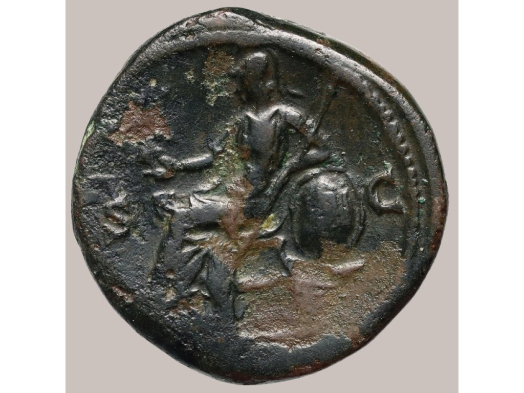 Římský bronzový sestercius ražený v Římě v roce 147 n. l. za vlády císaře Antonína Pia je krásnou ukázkou vysoké úrovně římské mincovní tvorby. Averz zobrazuje jeho portrét s vavřínovým věncem vpravo a legendou ANTONINVS AVG PIVS P P TR P COS IIII, která oslavuje jeho tituly a politické funkce. Reverz představuje bohyni Romu sedící vlevo na trůnu, držící v natažené ruce Viktorii (symbol vítězství) a v pravé ruce kopí, opřené o štít, jenž spočívá na přídi lodi — symbolizuje námořní sílu a ochranu impéria. V poli je písmeno S-C, označující souhlas senátu s ražbou. Tento sestercius má hmotnost 22,82 g a průměr 30 mm. Zachovalost VF+/VF zdůrazňuje kvalitní detaily jak portrétu, tak symbolického reverzu. Antoninus Pius byl známý jako mírumilovný a zbožný císař, což činí mince z jeho období vyhledávanými mezi sběrateli. Pokud je mince certifikována (např. NGC), potvrzuje to její autenticitu a podporuje hodnotu v rámci sbírek.